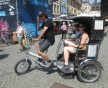 « Mon véhicule c’est la Mercedes du vélo. Tout est conçu pour que le pilote et les passagers s’y sentent bien. Il y a des feux et des clignotants, des protections contre la pluie… Il est également doté d’un moteur électrique qui permet d’arpenter les montées sans trop d’efforts. »