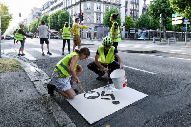 Malgré des distinctions et des statistiques favorables, certains grands axes de Strasbourg restent dépourvus d’aménagements cyclables. Ces lacunes mécontentent des cyclistes strasbourgeois, poussés à rouler sur le trottoir comme sur l’avenue Jean-Jaurès, la route du Polygone ou encore l’avenue des Vosges. C’est précisément sur cette dernière artère de Strasbourg que le collectif Vélorution veut inciter à la création d’une piste cyclable. Lundi 28 mai, ses militants ont même dessiné des vélos éphémères sur la chaussée, afin de matérialiser leur revendication.