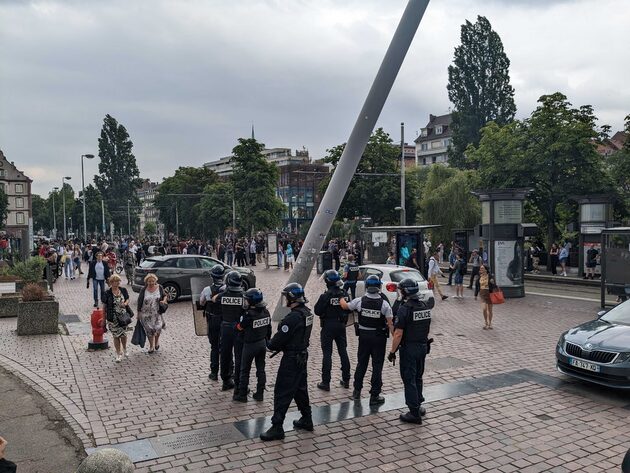Nous reprenons le compte-rendu en direct des événements, avec notamment le suivi du rassemblement annoncé place Kléber, en protestation du décès du jeune Nahel, tué par un policier mercredi à Nanterre lors d’un contrôle routier. Thibault Vetter est sur place.