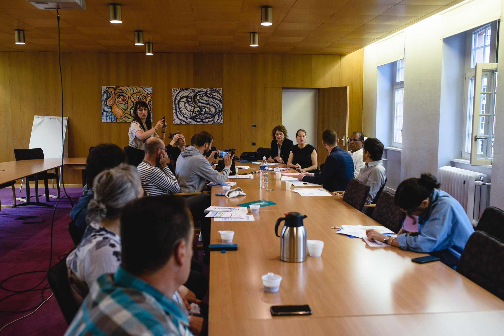 La petite troupe prend la direction d’une grande salle de réunion pour commencer. « C’est un peu cérémonial », convient la jeune femme de 45 ans, « mais pour parler tranquillement ce sera mieux. » Tout autour d’une table longue d’une dizaine de mètres, l’équipe de direction, les journalistes, mais aussi des « représentants syndicaux » (CFDT et UNSA) et « quelques agents » s’installent.