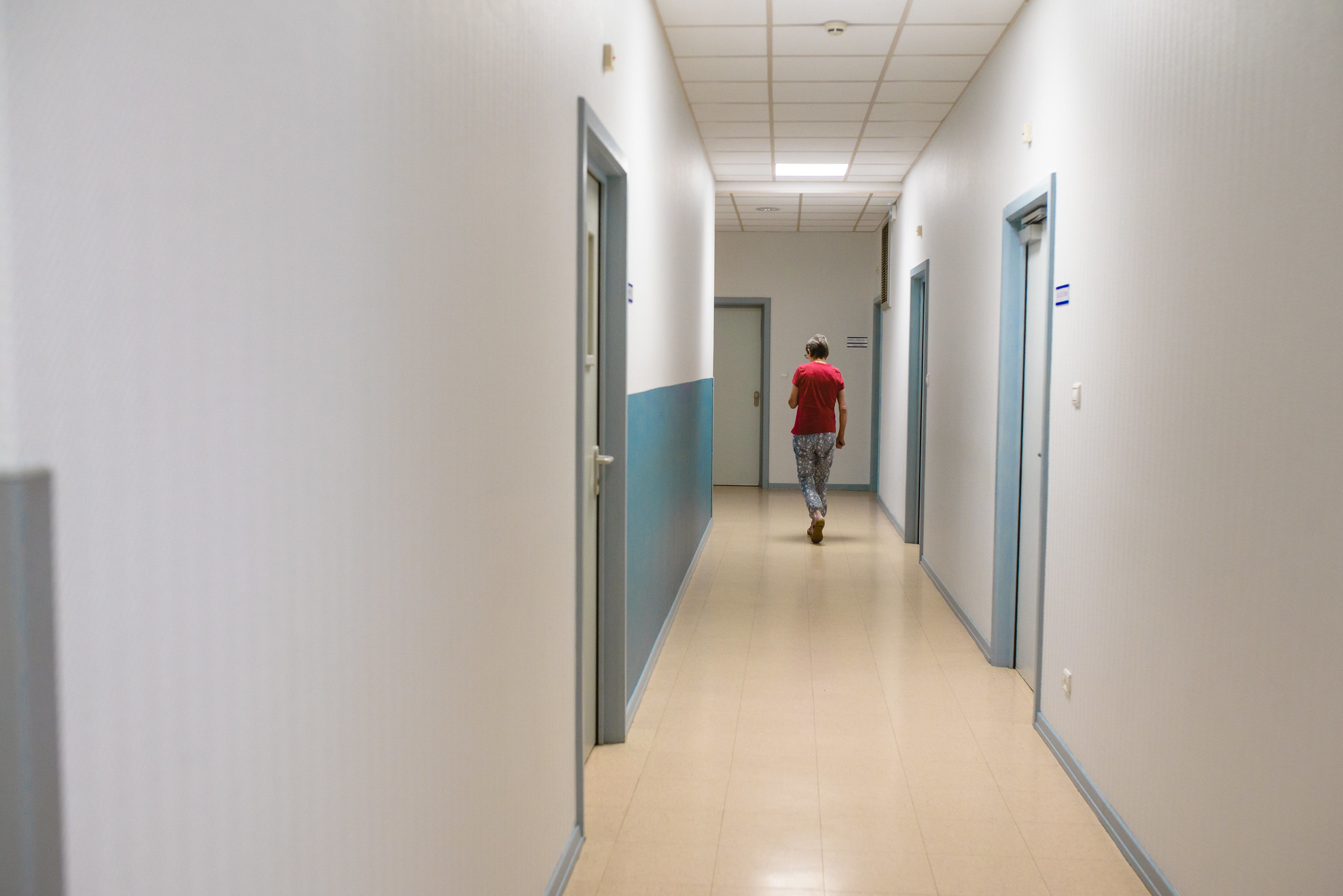 Chaque jour, ils sont neuf soignants (cinq le matin et quatre l’après-midi) pour s’occuper de ces patients. L’effectif tombe à deux soignants la nuit. « Et c’est suffisant ? », demande un journaliste à la cadre du service. Sourire gêné, regard à sa hiérarchie. Réponse convenue. « Ce sont les quotas nationaux. » Yasmine Sammour s’empresse d’ajouter : « Mais ça, c’est quand tout le monde est là, et que tout va bien », glisse la directrice qui veut jouer le jeu de l’honnêteté.