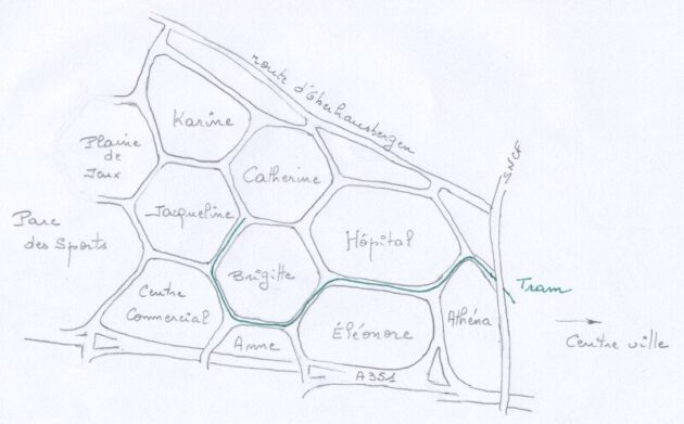 Schéma des différentes mailles qui forment le quartier. (Photo : Jean-René Gousset — Travail personnel / cc)